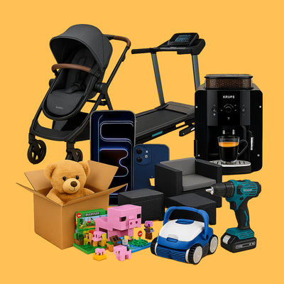 Un lote (palet o caja) con artículos devueltos por clientes, daños leves en logística, cambios de temporada u overstock. Los ofrecemos sin revisar y precintados con la info original (producto, precio y enlace).